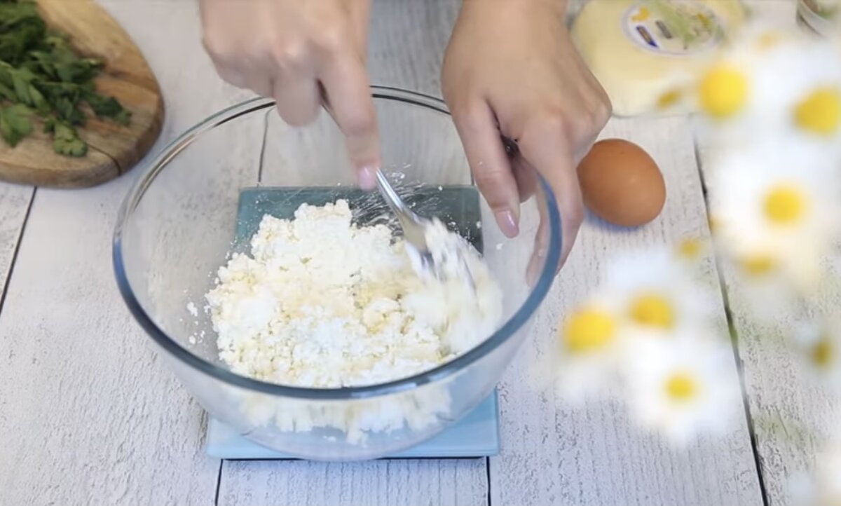 В творог добавляем сметану. Можно просто размять творог вилкой, можно пробить массу блендером, чтобы она стала однородной. Добавляем яйцо, посолили, по желанию можно других специй добавить (паприку, чеснок, перец). Сюда же добавляем мелко рубленную зелень и натертый сыр. Перемешали хорошенько и постепенно подсыпаем муку. Количество будет зависеть от того настолько сухим был творог, от размеров яйца и от Венеры в пятом доме Сатурна. В общем, с количеством муки не угадаешь) Так что ориентируемся на консистенцию теста - оно должно быть примерно как на сырники. Не разваливаться, чтобы из него получилось сделать лепешки, но и слишком плотным тоже быть не должно. Так что с мукой лучше не перебарщивать, подсыпать понемножку. А дальше формируем лепешки. Слишком большие не делайте - тяжело будет переворачивать. У меня из указанного количества ингредиентов получилось 3 лепешки. Обжариваем их на разогретой сковороде с двух сторон до золотистого цвета. Слишком сильный огонь не делайте,
