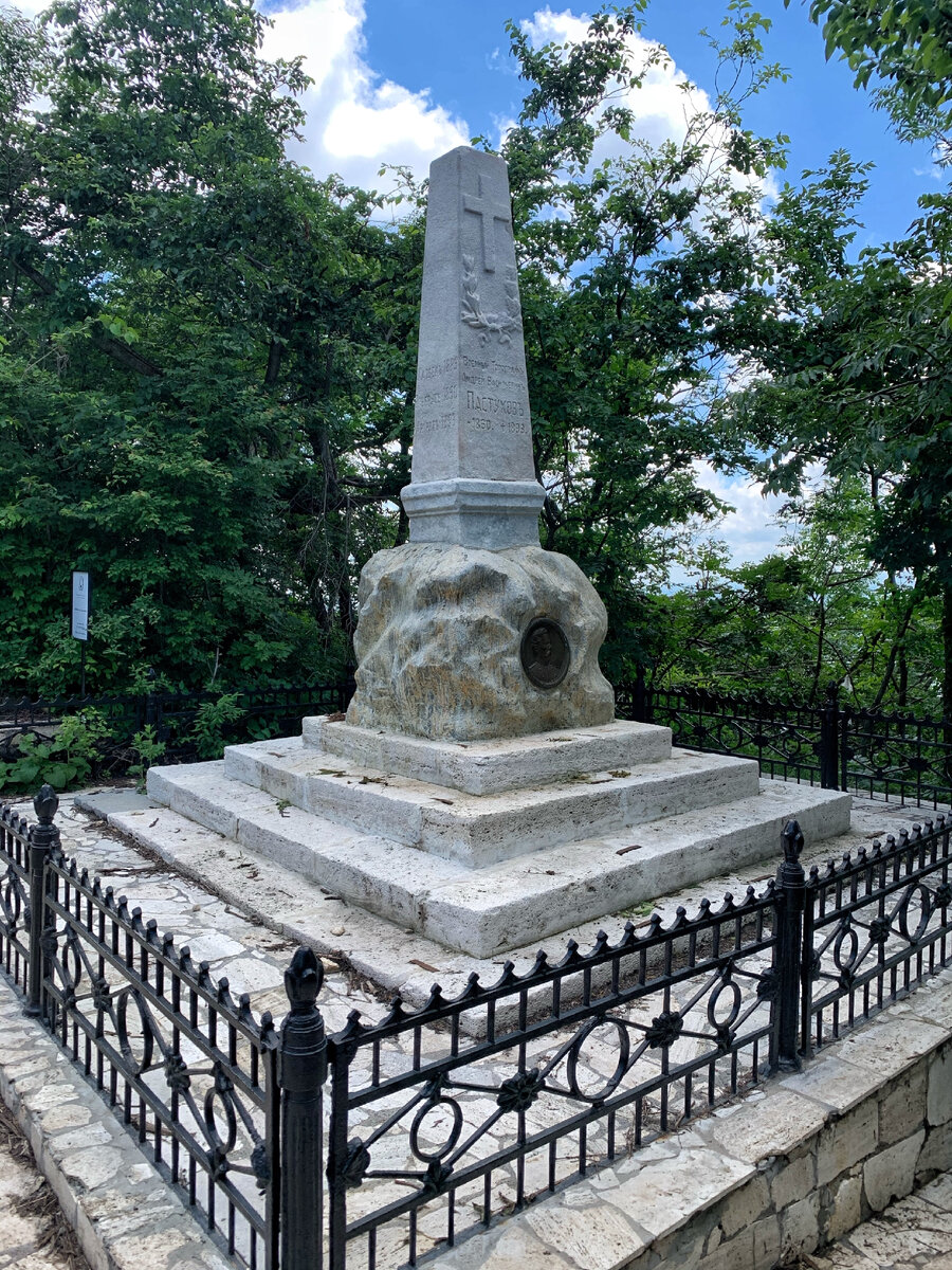 Знаковые личности Пятигорска это не только Остап Бендер, Киса Воробьянинов и Лермонтов, это еще и Андрей Пастухов - альпинист, этнограф, исследователь Кавказа. Но о нем, конечно, знают не все.. Его имя связано с зарей русского альпинизма, когда кавказские горы не были покорены и их топографических карт не существовало. Пастухов первым покорил обе вершины Эльбруса и внес неоценимый вклад в развитие альпинистского дела. В 1890 году он покорил западный Эльбрус в компании трех казаков. Это восхождение стало первым в истории альпинизма без местных проводников. Через шесть лет он одолел и восточную вершину. Также он дважды поднимался на Алагез, трижды на Большой Арарат, два раза на Малый Арарат. Я, к своему стыду, дошла до места его погребения только в прошлом году, хотя приезжаю сюда десять лет. Тысячу раз одолев Машук и облазив все склоны вдоль и поперек, я как-то время обходила эту скромную стелу стороной. Обращаю ваше внимание, что это не памятный монумент, а именно могила. Здесь Андрей