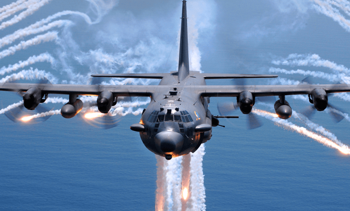 Как сообщает Business Insider, вертолетная платформа AC-130 любима коммандос и обычными наземными войсками из-за ее уникальной способности вести непрерывный огонь по цели. По сути, это воздушная артиллерийская платформа, AC-130 атакует, используя технику «поворота пилона» – летит по широкому кругу над целевой областью, обеспечивая постоянный объем огня, за что получил прозвище «Ангел смерти».