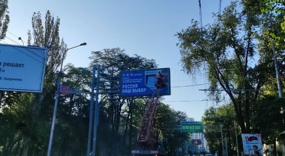 Прямой политической рекламы в виде предвыборных роликов на местных телеканалах и слоганов в прессе нет. Но при этом большинство мероприятий в «республике» проводится с обязательным уточнением — при поддержке «Единой России». Увеличилось и количество визитов российских политиков в Донбасс.