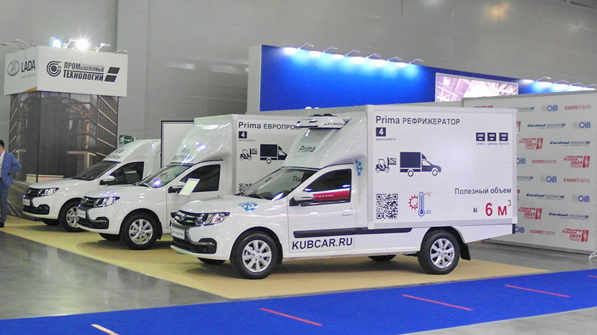 На выставке «Комтранс-2021» АВТОВАЗ представил новое поколение развозных фургонов LADA от компании «Промышленные технологии» На XVI международной выставке коммерческих автомобилей ComTrans 2021 АВТОВАЗ совместно с нижегородским заводом спецавтомобилей «Промышленные технологии» («Промтех-НН») представил три новинки в сегменте специальных коммерческих автомобилей, выполненных на базе популярного фургона LADA Largus с 1,6-лировым 16-клапанным 106-сильным двигателем ВАЗ-21129, включая промтоварный фургон Kub и фургоны Prima в промтоварном и рефрижераторном исполнениях. Фургон LADA Largus Kub отличается от базового фургона Largus F90 высокой пластиковой крышей на металлическом каркасе и увеличенным на 370 мм задним свесом, что увеличило полезный объем грузового отсека до 4,2 м3. При необходимости можно снять правую половину перегородки и пассажирское сиденье, что увеличивает полезное грузовое пространства еще на 400 литров – до 4,6 м3. Дополнительное удобство обеспечивают высокие распашные