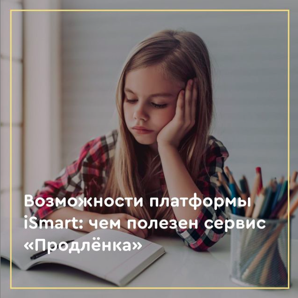Учебный год только начался, а вы уже устали помогать с уроками своему юному школьнику? Сервис «Продлёнка iSmart» решит эту проблему. Вам больше не нужно сидеть за учебниками вместе с ребёнком, дорогостоящие услуги репетиторов тоже не понадобятся, просто регистрируйтесь на платформе и присоединяйтесь к «Продлёнке».