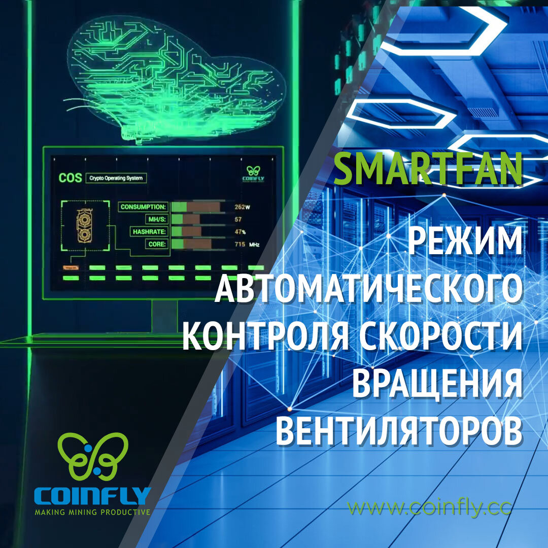 Согласитесь, Вы не всегда можете оперативно контролировать работу своих майнинг-ферм. Для таких случаев мы разработали и внедрили в систему COS ряд полезных функций. SmartFan — это режим автоматического управления скоростью вращения вентиляторов для поддержания стабильности температурного режима работы видеокарт. Принцип работы очень простой. При включенном режиме SmartFan, скорость вентилятора контролируется системой и зависит от двух параметров: текущей и максимальной температуры. Чем ближе текущая температура к максимальной, тем сильнее скорость вращения вентилятора. Иными словами, если оборудование не греется, то вентилятор будет работать на небольших скоростях, при повышении температуры скорость вращения будет постепенно увеличиваться. Этот режим помогает избегать резких критических переключений скорости вращения кулера, таким образом, сберегая его рабочий ресурс. Установите, запустите и протестируйте майнинг с помощью операционной системы COINFLY OS COINFLY – платформа продукти