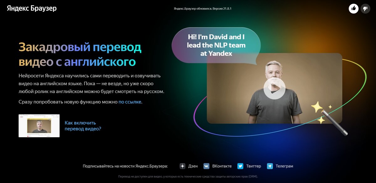 Яндекс с помощью нейросетей научился переводить англоязычные видео на русский язык. Большое достижение для российской компании, как никак.