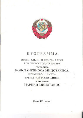 В конце июля 1991 года состоялся официальный визит в СССР премьер-министра Греции К. Мицотакиса, по существу последний визит главы иностранного правительства в Советский Союз. Визит прошел в полном соответствии с высоким уровнем советско-греческих отношений. Программа визита была очень насыщена. Состоялись переговоры К. Мицотакиса с М.С. Горбочевым, беседы с предстоятелем РПЦ Алексием 11, председателем Верховного Совета СССР А.И. Лукьяновым, главой правительства В.С. Павловым, а также мэром города Москва Г.Х. Поповым и Б.Н. Ельциным. К. Мицотакис возложил венок на могилу Неизвестного солдата. К. Мицотакису и М. Мицотакис был оказан радушный прием в Троице-Сергиевой Лавре, Загорск. М. Мицотакис (его жена) осмотрела Алмазный фонд СССР и музеи Кремля, посетила музей Древнерусского искусства им. Андрея Рублева. Кроме того, побывала в медико-инженерном центре при больнице № 19. Премьер-министр Греции К. Мицотакис посетил также Киев, где возложил венок на могилу неизвестному солдату. Имел б
