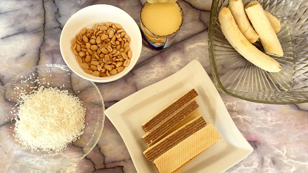 Конфеты из вафель с бананом,гущенкой и орешиками.