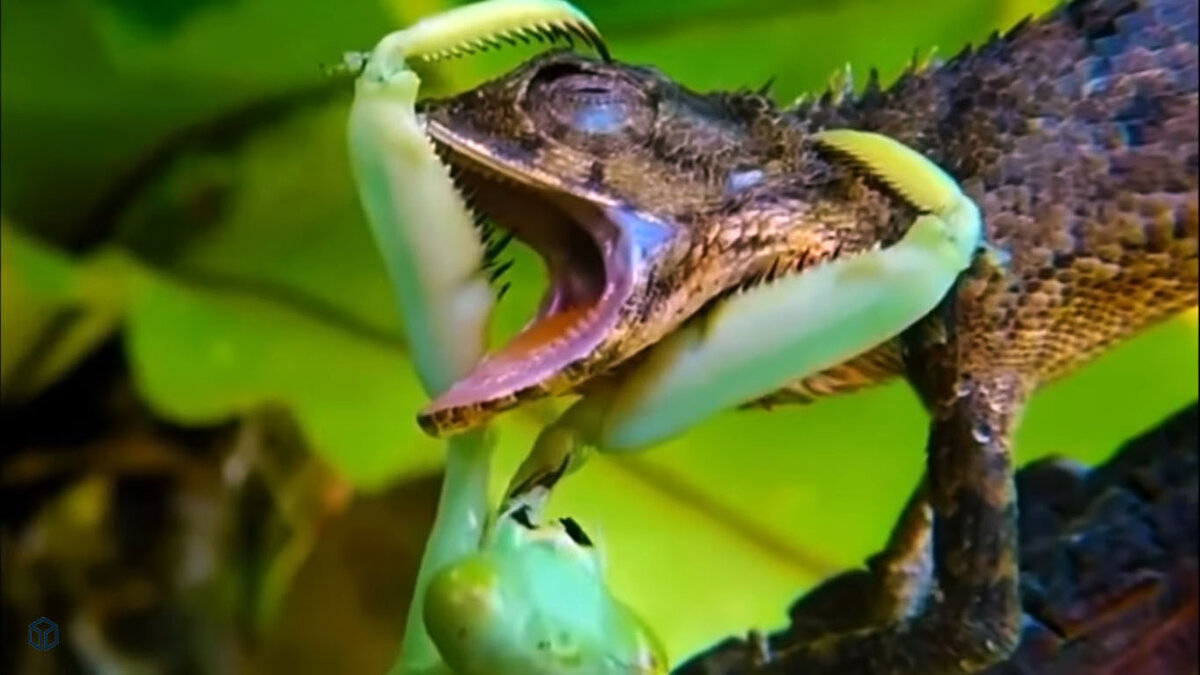 В мире природы, обычно, животные нападают на тех, кто ничего не сможет противопоставить. А иногда бывает, животные ошибаются и сами чуть не становятся жертвой. Сейчас речь об этих случаях. Для большинство членистоногих ящерица – самый настоящий великан. Ящерица справляется с ними без проблем. Но когда речь заходит о богомоле… Это настоящий терминатор в мире членистоногих. Они сами являются эффективными хищниками и ловят других насекомых. Когда ящерица решила полакомиться богомолом – это была большая ошибка. Рептилия сумела приблизиться богомолу и с помощью липкого языка хотела поймать насекомое. Но молниеносной реакцией и невероятно сильные лапки спасают насекомое. Он атакует в ответ. Сперва рептилия отбивается, но не бежит. Но богомол еще раз хватает голову ящерицы и начинает кусать дальше. В этой схватке ящерица проиграла чисто. Обычно тигры находятся на вершине пищевой цепи. Видимо, анаконда об этом не знала. Змея считает себя самой крутой. Но не стоит ей лишний раз связываться