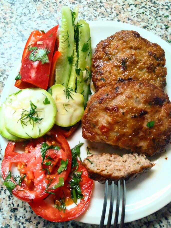 Всем привет, хочу поделиться рецептом нежных котлет. Очень просто готовить. Ингредиенты : на 4 котлеты Способ приготовления: Выложить в миску фарш, посолить ,поперчить его Укроп , петрушку измельчить и добавить к фаршу Помидор на резать мелким кубиком, очищать от кожицы не нужно. Добавить к фаршу Хорошо перемешиваем, до однородной массы На доску насыпать муку и выкладывайте фарш. Сформировать котлеты, форму можете любую делать, как вам удобнее, у меня такая. Присыпать мукой сверху и по бокам Отправить на разогретую сковородку с раст. маслом жарить котолеты. Огонь делаем чуть меньше среднего чтобы фарш успел приготовиться. Жарим до темно-золотистого цвета. Переворачиваем и повторям с другой стороны. Подавать с любым гарниром, я выбрала маринованные овощи, рецепт которых вы можете посмотреть на моем канале, вот ссылка. https://zen.yandex.ru/media/id/61166fa76eab3f04de1a3a58/marinovannye-ovosci-za-3-chasa-kabachki-pomidory-ogurcy-perec-prosto-palchiki-oblijesh-613a41bf63b0e5314e16b588 При