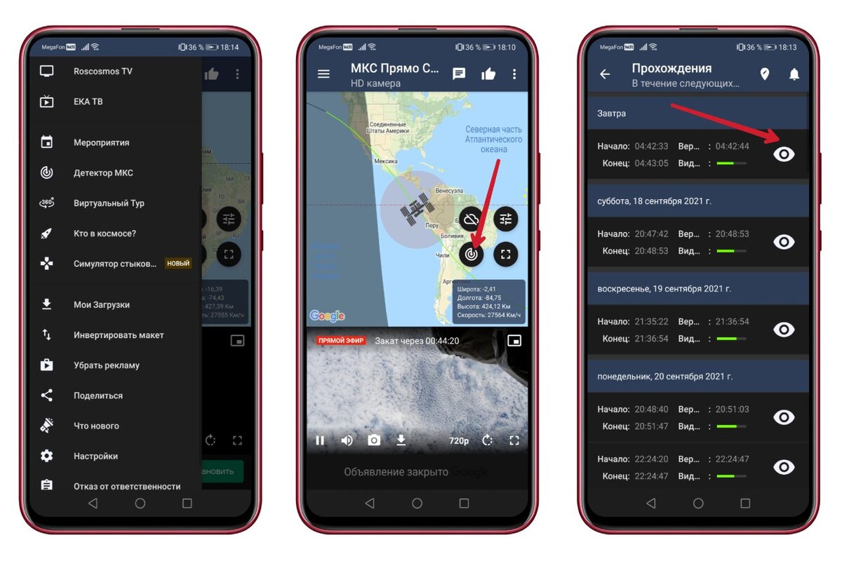 🛰 Как посмотреть на Землю в прямом эфире с МКС Для любителей космоса: вы можете посмотреть, как выглядит земля с камер Международной Космической Станции в режиме реального времени. Для этого не нужно покупать подписку NASA или доступ к камерам у Роскосмоса. Нужно всего лишь скачать приложение "МКС прямо сейчас". Как им пользоваться: 1. Скачиваем приложение из PlayMarket или AppStore. 2. Открываем и у нас появляется меню, выбираем кнопку "HD камера", появится карта с местоположением МКС и прямой эфир. 3. Чтобы посмотреть, когда МКС будет пролетать над нами, нажимаем на значок геолокации (круги) — появится расписание. Нажимаем на значок глаза, будет компас с подсказками, которые помогут определить точную траекторию полёта МКС. Если она будет пролетать над вами ночью — вы сможете увидеть её в небе! Также в приложении можно пройти виртуальный тур по МКС, узнать, кто сейчас находится на станции и посмотреть на землю с разных камер.