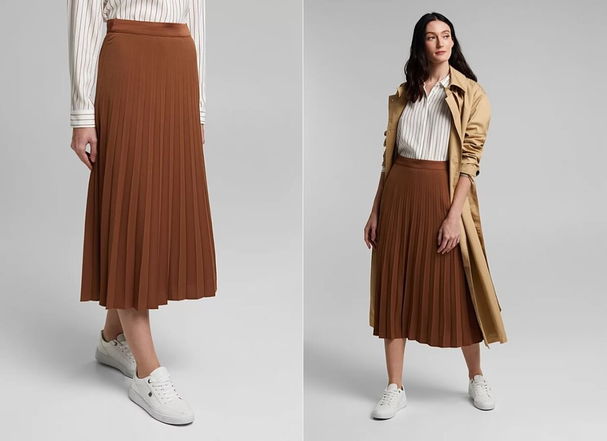 Юбки — базовая деталь гардероба любой женщины. С ними она можно поддерживать уверенность в себе, привлекать внимание к ее стройным ножкам, необычной обуви и, конечно, очаровывать мужчин вокруг. Всего-то и нужно — научиться правильно подобирать и сочетать модели, которые украсят ваш образ. Например, повторить романтический осенний образ поможет плиссированная юбка — тренд последних сезонов. Swjournal расскажет о том, всем ли она подойдет и с чем носить такую плиссированную юбку? Какие нюансы стоит учесть при ее выборе? Как собрать модный образ с актуальной вещью? При верном выборе длины, фасона и цвета плиссированная юбка сделает ваш силуэт привлекательнее, подчеркнет красоту ног. А еще правильный фасон юбки поможет вам «помолодеть» на десяток лет. Отличительная особенность юбки-плиссе — вертикальные складки, создаваемые отутюживанием ткани или нанесением на нее принта, создющего зрительный эффект мелких складок. Иногда дизайнеры используют комбинацию из разных тканей, отличающихся др