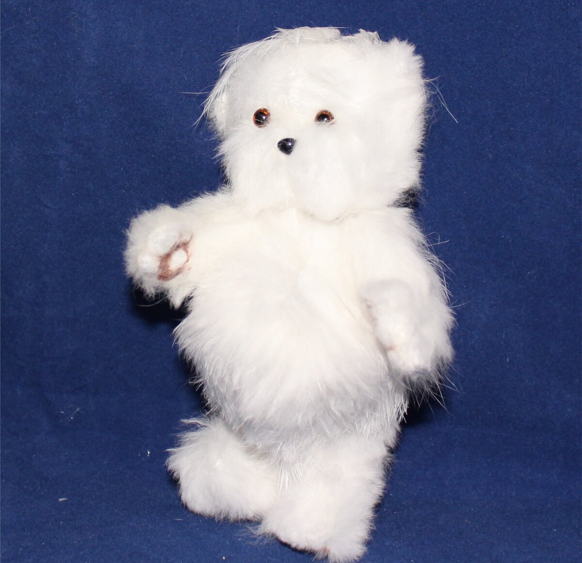 Наталья Игнатьева Используемые материалы (тело/глаза/лапы/набивка): Этот маленький плюшевый мишка chabby Тодд сделан из переработанного меха кролика, подведенными стеклянными глазами и носа из пластика. Он был сделан в стиле 1930-х годов. Дебют: 16 июня 2011. Да, этому медведю 10 лет. Художник/дизайнер: PhD-Наталья Игнатьева. САЙТ: www.toystreasures.com Размер (в дюймах): 5 дюймов (13 см) в высоту. Тираж: 1 (One Of а Kind)