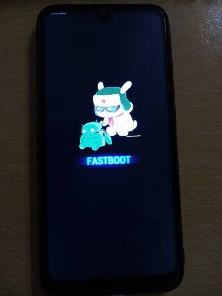 Потом когда телефон перезапуститься, то-есть когда будет чёрный экран отпускаем все кнопки, кроме "громкость -" и должен запуститься FASTBOOT.