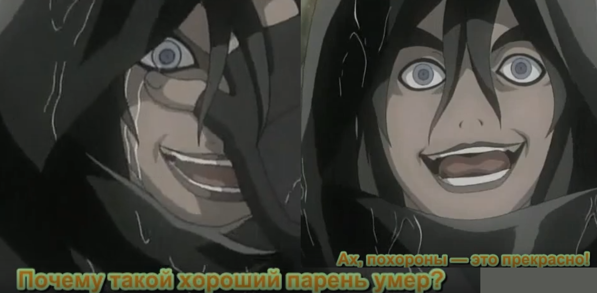 Во-вторых - его характер\особенности. Да, это безумно, но парень просто обожает ПОХОРОНЫ, на которых он реально плачет, наслаждаясь, при том, что хоронит он людей заживо за незначительные оплошности. Но и хоронить кого попало он не намерен: что бы ритуал похорон был "достойным" - Райге обязательно было знать хоть что-то о "мертвеце".