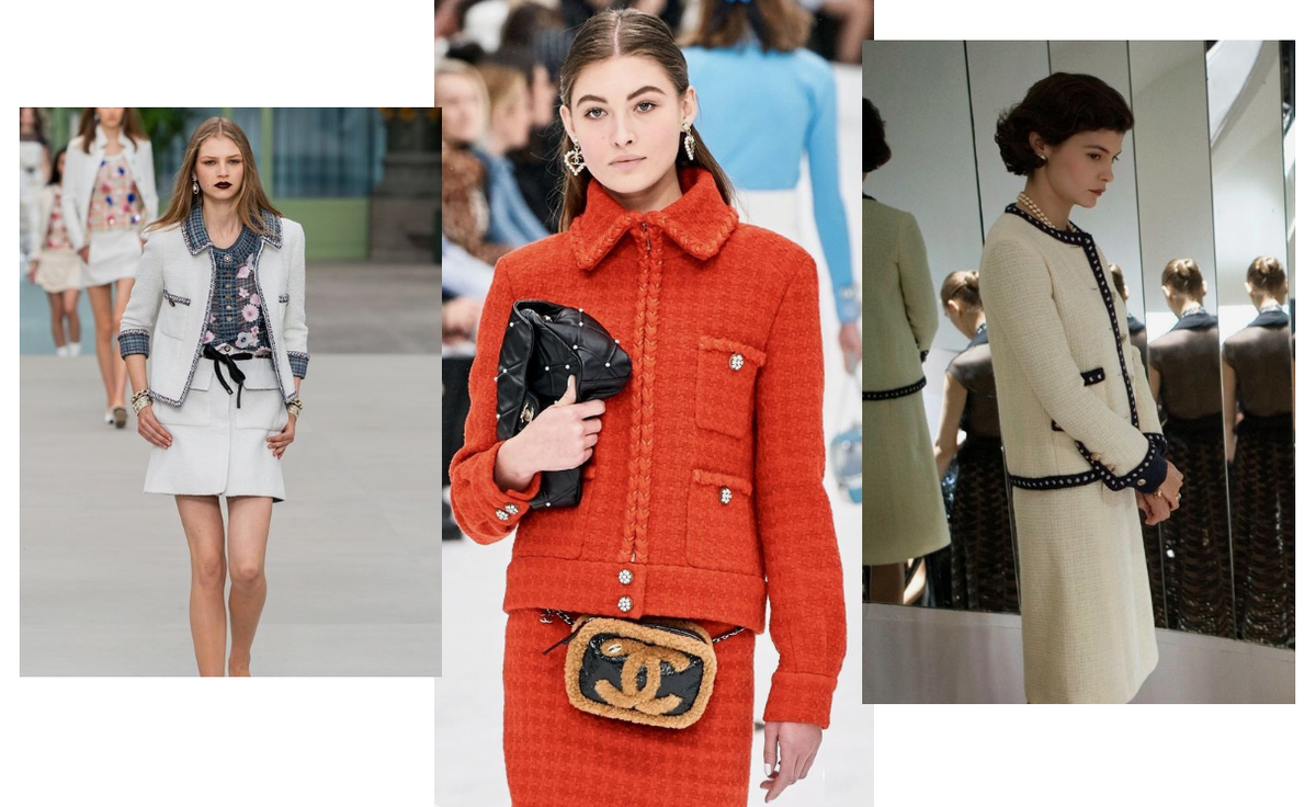 Знакомы ли вы с таким понятием как "ДНК-бренда"? Это своеобразный визуальный код, отличительные и узнаваемые признаки модного Дома, которые помогают нам понять - перед нами определенный бренд. Давайте немного поговорим о том, какие силуэты, формы, ткани, цвета, фактуры, аксессуары и отдельно взятые вещи помогли прославить модный Дом и в полной мере отражают ДНК бренда CHANEL. _____________________________ Твидовый костюм Пожалуй, первое что приходит на ум при упоминании бренда - это твидовые костюмы, а в особенности жакет "в стиле Шанель". Именно благодаря усилиям Коко Шанель, которая вдохновилась униформой слуг, твид стал очень популярным и не сдает свои позиции даже сейчас. Крупный бант Такой женственный символ как крупный бант тоже намекает нам на то, что перед нами прекрасный бренд CHANEL. Обувь с темным мысом Еще один отличительный знак бренда - это обувь с черным мысом. В частности такую популярную и удобную обувь как балетки подарила нам именно Коко Шанель (бежевые балетки с ба