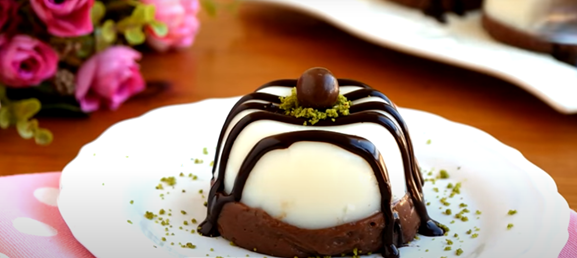 Добрый день, сегодня я вам хочу рассказать и показать десерт, который мы готовим на каждые праздники, гости просто в восторге. Получается как в дорогом ресторане, а делается очень просто. Берем кастрюлю Наливаем 4 стакана молока Добавляем 3 ложки муки, 1 столовую ложку крахмала, добавляем сахарный песок. Варим помешивая пока не закипит. Снимаем с плиты приготовленный пудинг и кладем на него ваниль, масло и перемешиваем. Заливаем пудинг в формы. Берем шоколадку и растапливаем в молоке, молока хватит 0,5 стакана перемешиваем. Добавляем в наш пудинг. Ставим в холодильник на 2-3 часа. Вы можете подавать десерты, перевернув их на сервировочной тарелке и украсив по своему желанию. Удачи тем, кто постарается.