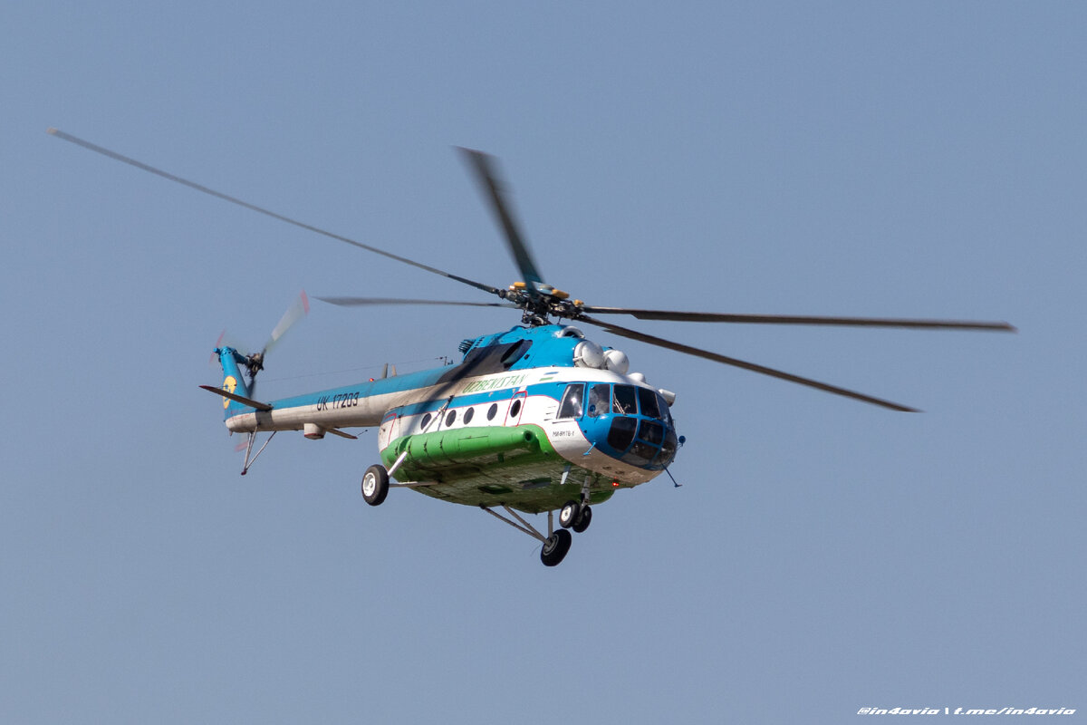 Ми-8МТВ-1 UK17203 авиакомпании Uzbekistan Airways совершает облет населенных пунктов в Ташкентской области в рамках кампании "Қора дори–2021" по поиску и предотвращению выращивания, хранения и распространения наркотических средств. Вертолет оснащен специальным оборудованием, позволяющим эффективно осуществлять мониторинг прилегающей местности. #фотодня
