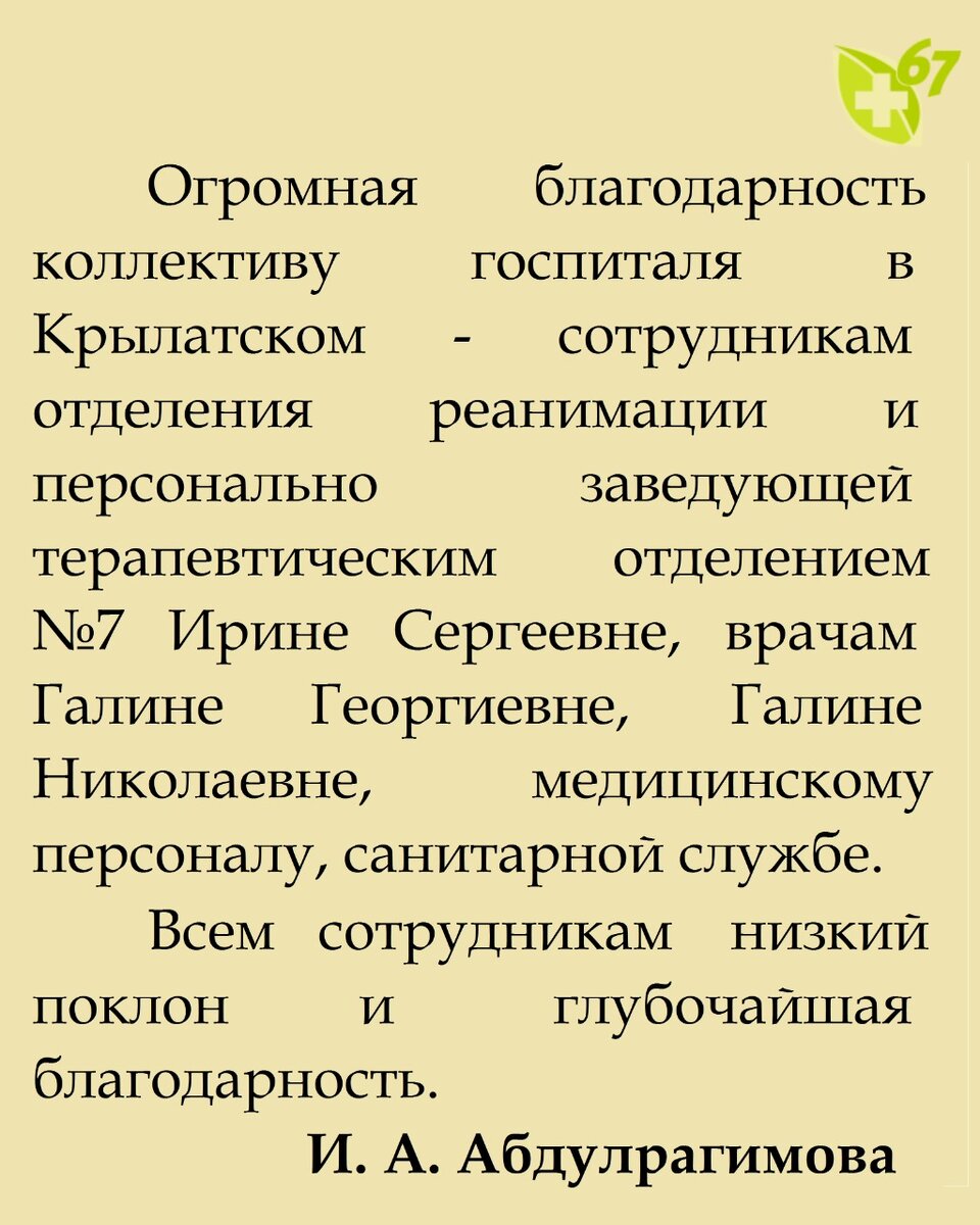 Мы продолжаем получать благодарности от пациентов отделений, оказывающих помощь пациентам с COVID-19, и их родных. Большое Вам спасибо за тёплые слова! Берегите себя - соблюдайте меры профилактики и не откладывайте прохождение вакцинации. Узнать подробности о вакцинации от COVID-19 и записаться на прививку можно на сайте MOS.ru по ссылке: https://www.mos.ru/city/projects/covid-19/privivka/ Будьте здоровы! #Москва #Крылатское #госпиталь #врачи #медсестры #больница #гкб67 #COVID #коронавирус #спасибо