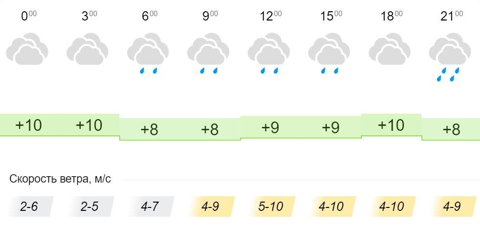 Синоптики рассказали, какая погода ожидает жителей Кировской области в пятницу, 24 сентября. Днем температура воздуха составит +8…+9°С. При этом утром и вечером воздух прогреется до +8…+10°С. Весь день ожидается пасмурная и дождливая погода. Скорость ветра в течение суток составит 2-10 м/с.