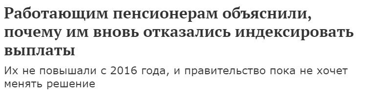 Кабмин уже в четвертый раз отклонил законопроект об индексации пенсий работающим пенсионерам, который в преддверии выборов был внесен в Госдуму партией ЛДПР. Напомню, что пенсии работающим пенсионерам не повышали с 2016 года. Как следует из заголовка новости, есть некое объяснение такого шага. Открываем новость и читаем, что же это за объяснение... Оказывается, авторы законопроекта не указали, из каких источников будет финансироваться такое повышение. То есть, снова, всем нам известное "денег нет...". Источники выплат по 10000 рублей всем пенсионерам страны перед выборами при этом в правительстве нашли без проблем, и безо всяких законопроектов и финансово-экономических обоснований. Просто взяли и выплатили. Ну что ж, раз авторы законопроекта не нашли источников финансирования, то могу им подсказать, тем более, что эти источники буквально лежат на поверхности. В 2020 году профицит Пенсионного фонда РФ составил 575,6 млрд. рублей. Количество работающих пенсионеров в России составляет око