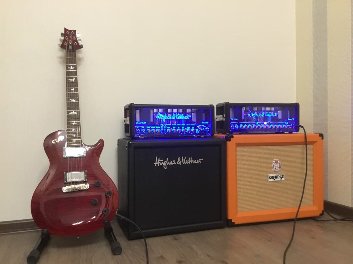Гитары лежат в чехлах рядом друг с другом (чтоб струны не колосились), включен бридж, громкость и тон на максимуме.