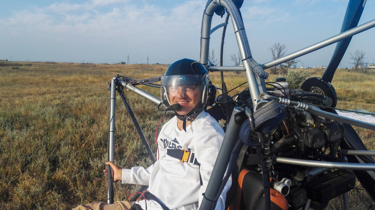 (На заглавном фото: Александр Востриков в инвалидной коляске на параплане.)