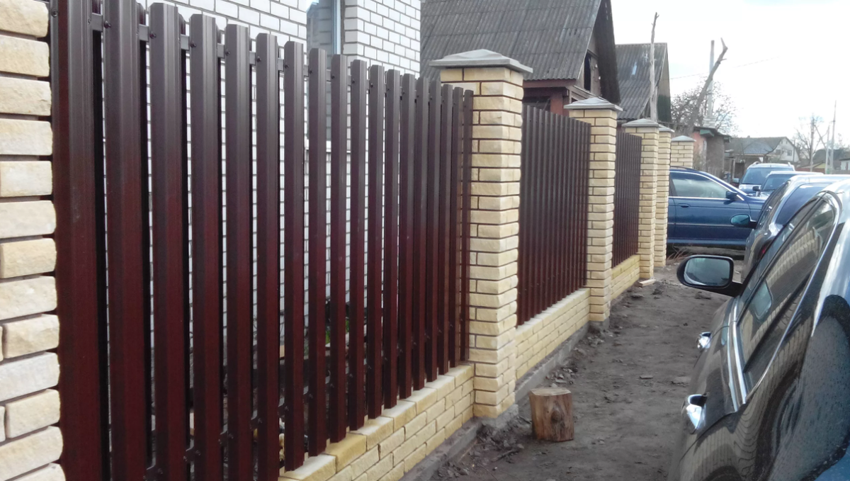 Как сделать красивый забор из профнастила самому Строительство забора своими руками требует определенных знаний и навыков. Тем более, что дачный участок – это место, где каждый человек проводит значительную часть времени. Поэтому при проектировании ограждения необходимо соблюдать определенные требования. Дачный участок не требует особой строгости в плане безопасности, но все же должен быть огражден. Чаще всего для этого выбирают не слишком дорогой вариант.