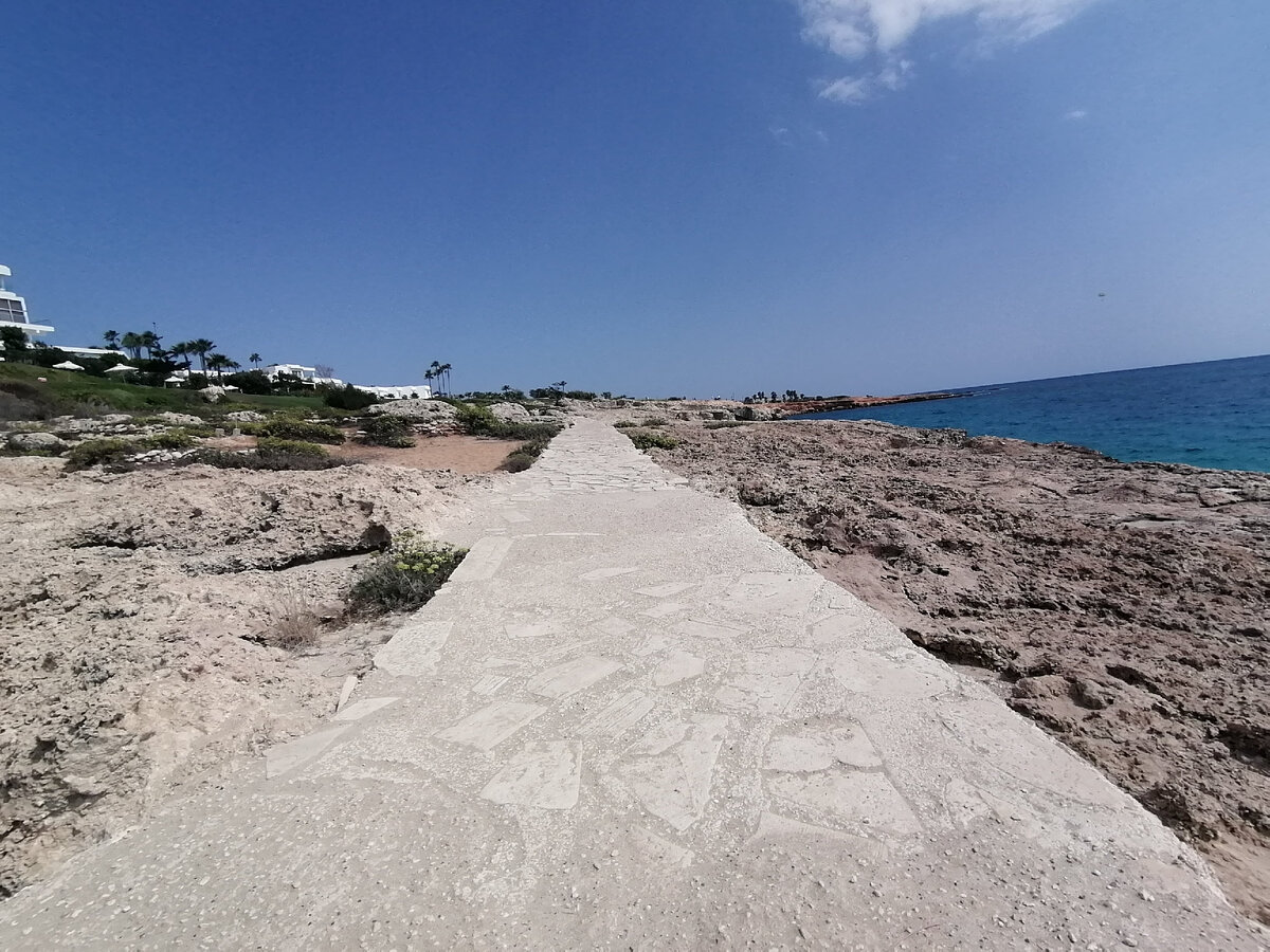 Самым приятным на Кипре оказалась возможность бесконечно долго идти пешком вдоль моря. Мой отдых был в Айя -Напе. Набережная ухоженная, заметно , что за порядком следят. Проходя очередной километр, я натыкалась на новый пляж, плавала и шла дальше. На острове все пляжи доступны для туристов, нет привязки к отелям, и это было главным преимуществом для меня. Просыпаясь около 8 утра, я выходила на прогулку в 10-00, и просто выбирала новое направление. В это время большинство туристов или спят, или загорают у бассейна, и мне удавалось увидеть самые красивые места без толпы. На фотографиях видно, что вокруг меня безлюдно, а значит, мне были гарантированы красивые фотографии и классная уединенная атмосфера. Для желающих побыть наедине с морем на острове много лавочек, стоящих по одной, это обеспечивает отсутствие скопления людей. Будь этих лавочек несколько, они привлекали бы толпу и от этого утратили бы свою ценность. На второй день стало понятно: заблудиться невозможно, с любой улицы
