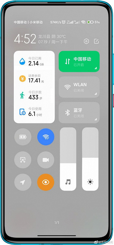 Новая оболочка получит как визуальные, так и функциональные улучшения. В последнее время многие отмечают, что разработчики MIUI для смартфонов Xiaomi будто топчутся на месте: MIUI 12 получилась не то чтобы сильно новой, а последовавшая затем MIUI 12.5 лишь исправила баги. На фоне всего этого следующая оболочка MIUI 13 кажется крупнейшей за последнее время — разработчики её уже активно тестируют, а в сети постоянно появляются скриншоты и информация о будущем обновлении. На данном скриншоте просочившемся в сеть, видна шторка уведомлений с виджетом внутри, отображающим сводку различных данных (объём потреблённого трафика, баланс счёта, количество пройденных шагов).