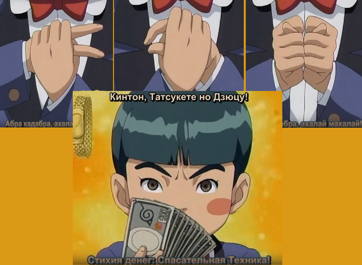 Например, неплохое дзюцу "Канне буншин но дзюцу", которое, как вы поняли, в оригинале является игрой слов с "Каге буншин", и теперь это не теневое, а денежное клонирование.