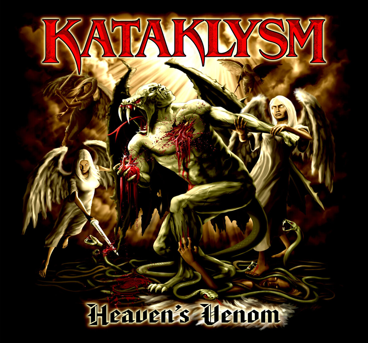 Старейшая и многоуважаемая death metal формация из глубин Канады. Хотя сами музыканты называют свой жанр исполнения необычным словосочетанием, как northern hyperblast. Правда всё это было довольно давно и на данном этапе формирования коллектива в 2010 году сложно характеризовать их музыкальное творчество этим ярлыком. Тем не менее, после ухода Сильвана Хоуде музыка группы претерпела множество изменений, повлиявших на мелодичную сторону Kataklysm. После лишенного всякой надежды сингла Cross The Line Of Redemption, словно выброшенного на затравку фэнам группы, мне поначалу показалось, что на Heaven’s Venom всё окажется выполненным в этом духе. Но разочарования не последовало, так как релиз удался. По отличительным особенностям музыку Kataklysm можно узнать за версту. И на Heaven’s Venom, впрочем как и в большинстве случаев, встречается череда брутальных компонентов и уютно соседствующих с ними просторных мелодичных партий, в чем проявляется быстрота сокрушительных бласт-битов; а также