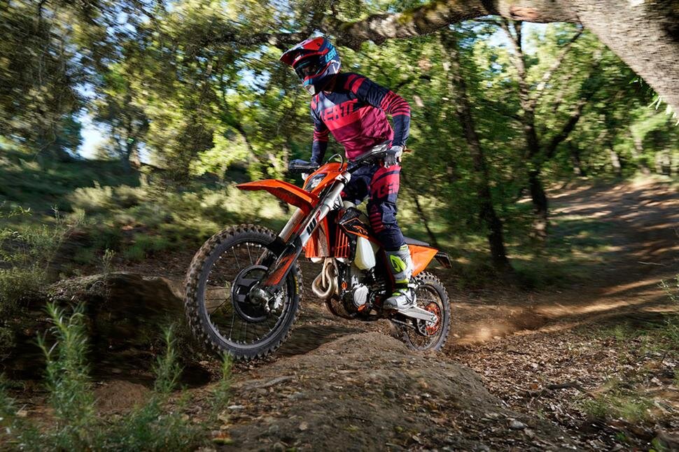 Конечно, здесь очень важна правильная работа коробкой. Переключаться надо будет много, но так и должно быть на малокубатурнике, и это не снижает удовольствия. Как и на более кубатурных собратьях с TPI, двигатель KTM 150 EXC TPI откликается на ручку газа мгновенно. Я быстро приноровился к характеру движка и научился работать газом максимально эффективно. Как и с четырёхтактной 250-кой, здесь райдер может взять от байка максимум (в случае с 450-кой лимитирующим фактором обычно становится сам райдер).