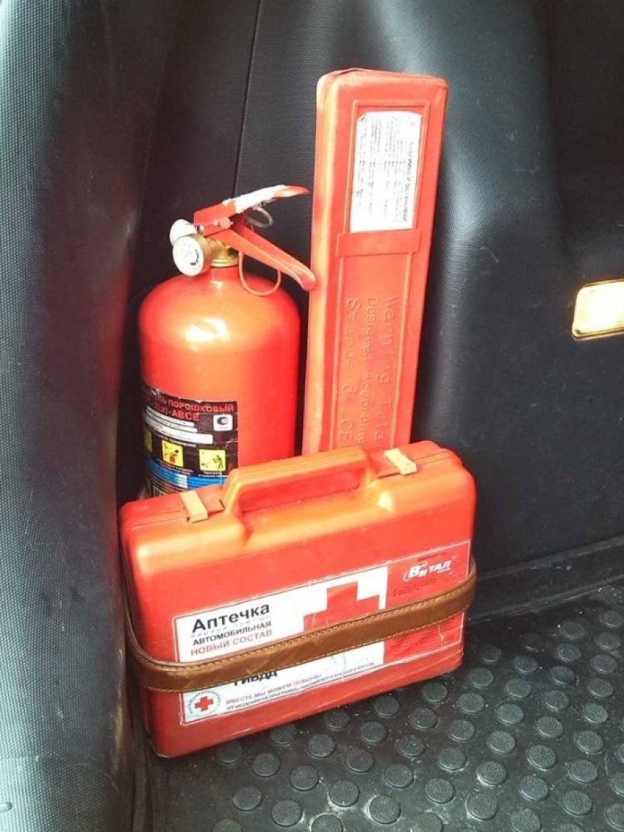 Приветствую, водители ! Сегодня поговорим нужно ли нестись показывать аптечку и огнетушитель представителю правопорядка по его требованию. С представителями порядка на дороге абсолютно каждый автомобилист сталкивался в своей жизни и не раз, но что поделать, служба у них такая. Очень хорошо, когда инспектор просто проверяет в порядке ли наши документы, после чего желая счастливого пути отпускает водителя дальше куда он направлялся. Но ситуации как и настроение испектора бывают разные и вот тут не знаешь чего и ждать, ведь как мы все знаем, если человек хочет придраться, то обязательно найдет до чего. Отсюда и берутся штрафы "из воздуха" в плане наличии в авто аптечки и огнетушителя, а также знака аварийной остановки. Хоть в наше время это уже редкость, что инспекторы ГИБДД интересуются наличием в авто аптечки, но все же случаи бывают. Если в автомобиле отсутствует аптечка, огнетушитель, знак аварийной остановки, то его дальнейшая эксплуатация запрещена и предусмотрен штраф в размере 50