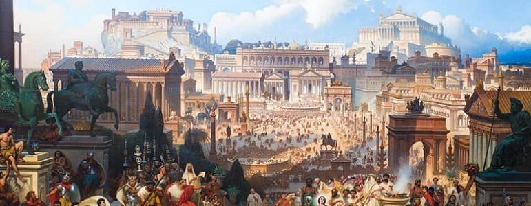 Вторая часть античного искусства принадлежит творцам Древнего Рима. Хотя следует отметить, что многое римляни позаимствовали у завоеванных ими греков. Ученые разделяют историю древнеримской культуры на три периода: Наибольшую известность получила римская скульптура. Основы её были полностью позаимствованы у греков, их скульптуры являлись для римлян эталоном. Многие греческие скульптуры имели свою римскую копию, и в большинстве случаев именно копии дожили до наших дней. Во время завоеваний греческих ремесленников не убивали, а брали в плен и везли на родину как трофей. Там они трудились на благо чужой страны - прекрасные рельефы и скульптуры греческих мастеров украшали соборы Рима. Но и среди римлян были талантливые мастера. В отличие от греков, которые стремились показать красоту идеального человека, римляне старались точно и достоверно передать особенности человеческого тела. Они делали скульптуры из дорогих сортов мрамора, а после дорабатывали их красками, для большего сходства