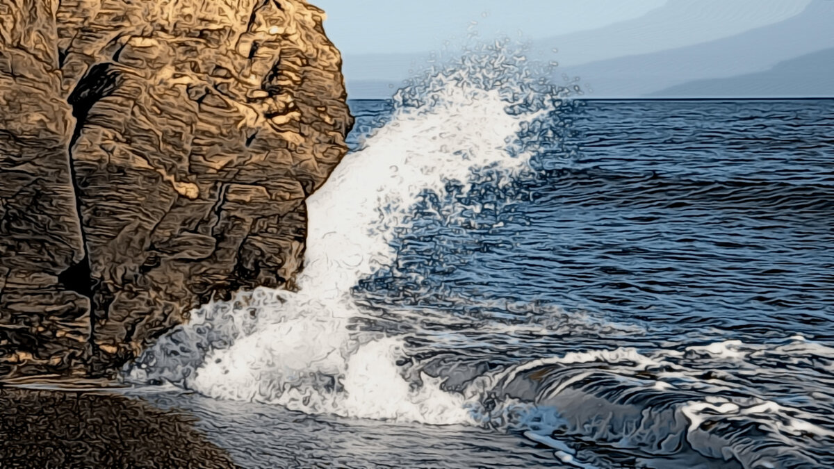 Волне очень нравилось резвиться, ей нравилось ласкать прибрежные камни. Но однажды с ней произошла вот какая история. Как-то, случайно оказавшись в незнакомой бухте, она встретила его. Он — это Утес. Он располагался прямо посреди бухты. Утес и Волна подружились. Теперь они старались много времени проводить вместе. Им нравилось общаться друг с другом. А разговаривать они могли часами.