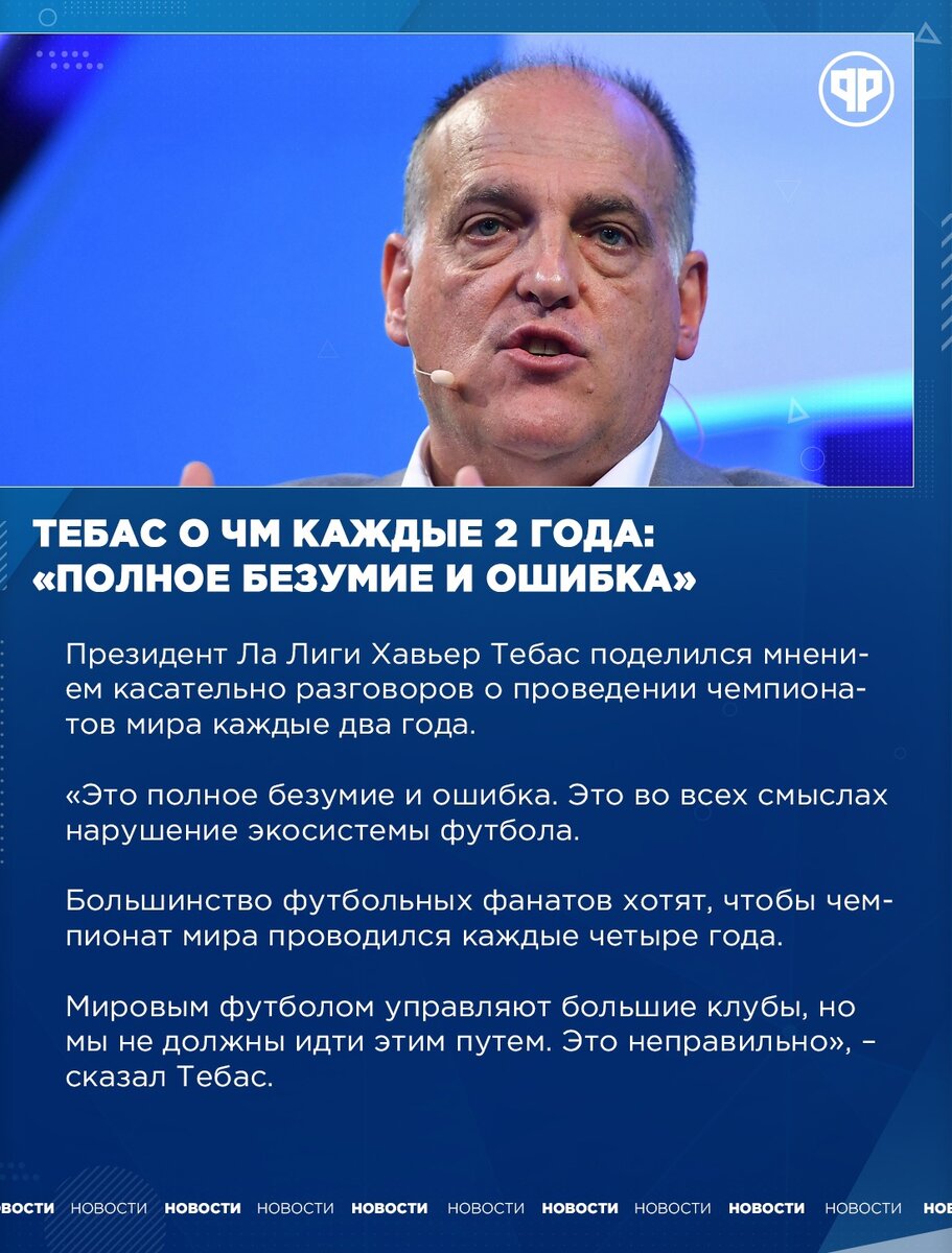 Тебас о ЧМ каждые 2 года: "Полное безумие и ошибка"