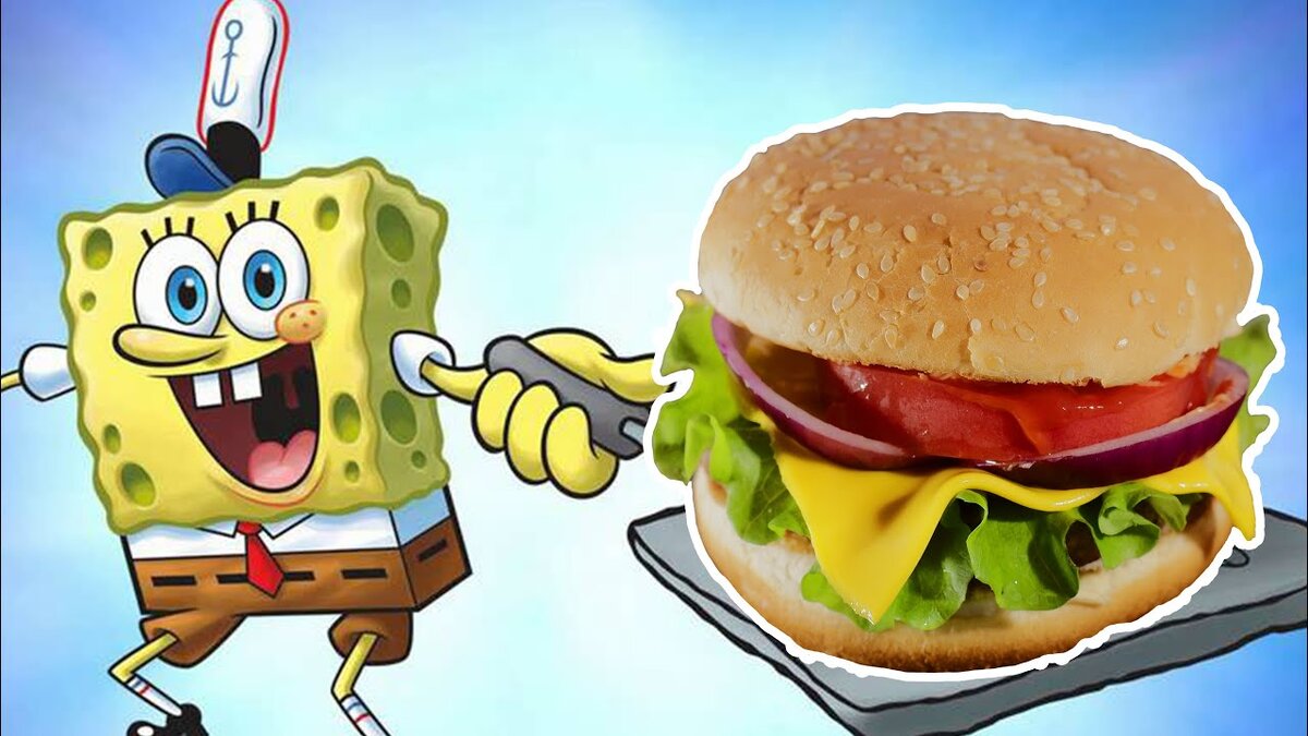 Крабсбургер (англ. Krabby Patty) - это популярный бургер, подаваемый в ресторане "Красти Краб". Самое известное блюдо среди ресторанов и лучший бургер в Бикини Боттом. Продукты для приготовления Крабсбургера Порций 1 Как приготовить 1. Подготовим набор продуктов, необходимых для приготовления правильного Крабсбургера от Спанч Боба. 2. Репчатый лук нарезаем кольцами. Чтобы лук не горчил, его заливаем половиной стакана кипятка и немного маринуем, добавляя 2 столовые ложки уксуса 9% и 1 чайную ложку сахара. Можно взять красный лук, он сладкий и не горчит. 3. Подготовим фарш для котлет. Фарш подойдет любой как говяжий, так и свино-говяжий. Я в этот раз использовала свинину с курицей. Ничего кроме соли и перца в фарш добавлять не нужно. Даже без яйца фарш отлично лепится. Формируем из фарша большую котлету размером чуть больше диаметра булочки. 4. Жарим котлеты для Крабсбургера на небольшом количестве растительного масла по пять минут с каждой стороны до появления золотистой корочки. 5. Бу