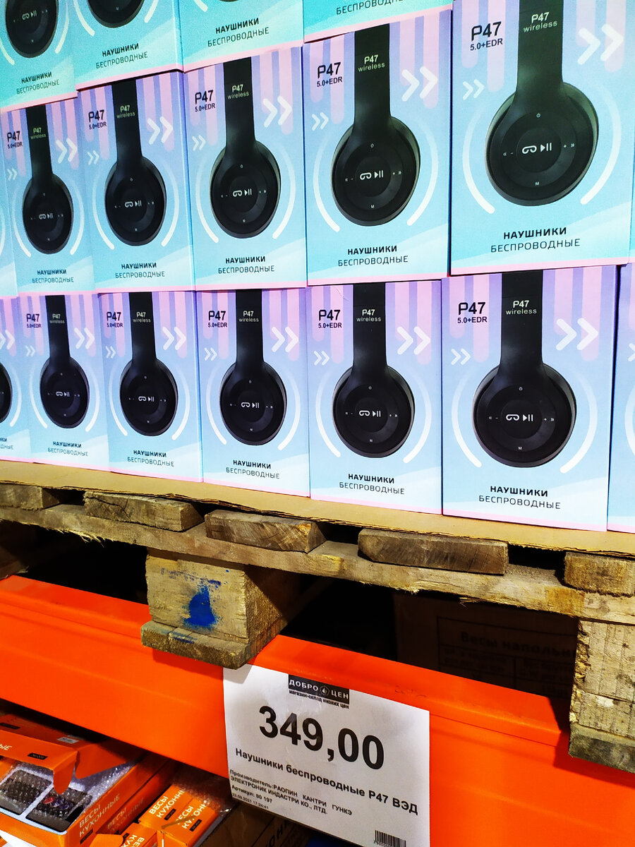 Беспроводные наушники с функцией bluetooth и разъёмом для карты памяти. Цена 349 рублей.