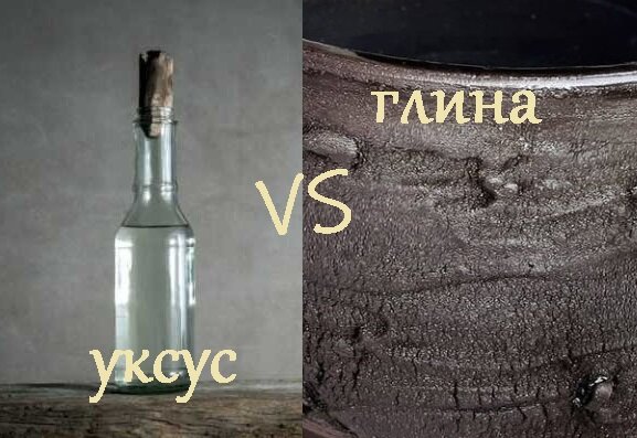 Между глиной и уксусом возникает та же реакция, что и между уксусом и содой. Кислота + щёлочь = нейтрализация. Только в глине это приводит к частичному размачиванию и разбуханию, за счёт вспенивания. Для успешной реакции нужны: