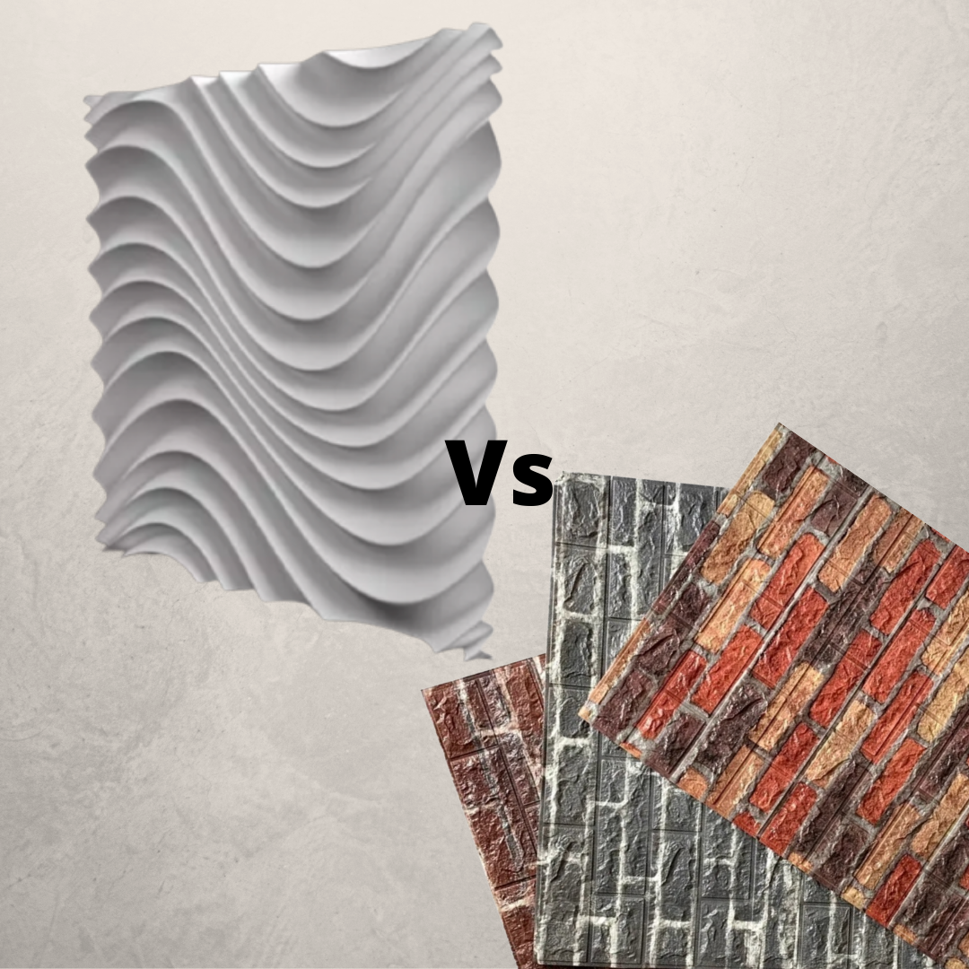 Самоклеящиеся и гипсовые панели принимают любую форму, цвет и рельеф, будь то камень, дерево или ткань. Однако при тактильном осмотре гибкая плитка будет “проседать” под пальцем.