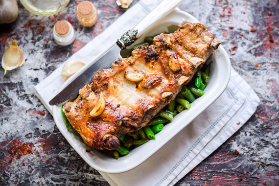 Свинина в духовке со стручковой фасолью это блюдо где нет ничего лишнего. Здесь есть мясо - приготовленное однако без лишних жиров. И есть фасоль - полезный низкокалорийный овощ. А их сочетание дает нам простой и сытное блюдо для семейного обеда. Попробуйте: Свиные ребрышки в духовке Источник: https://kopilka-kulinara.ru/myaso/svinina/svinina_v_duhovke/svinye-rebryshki-v-duxovke-so-struchkovoj-fasolyu-ochen-prostoj-reczept-s-foto/