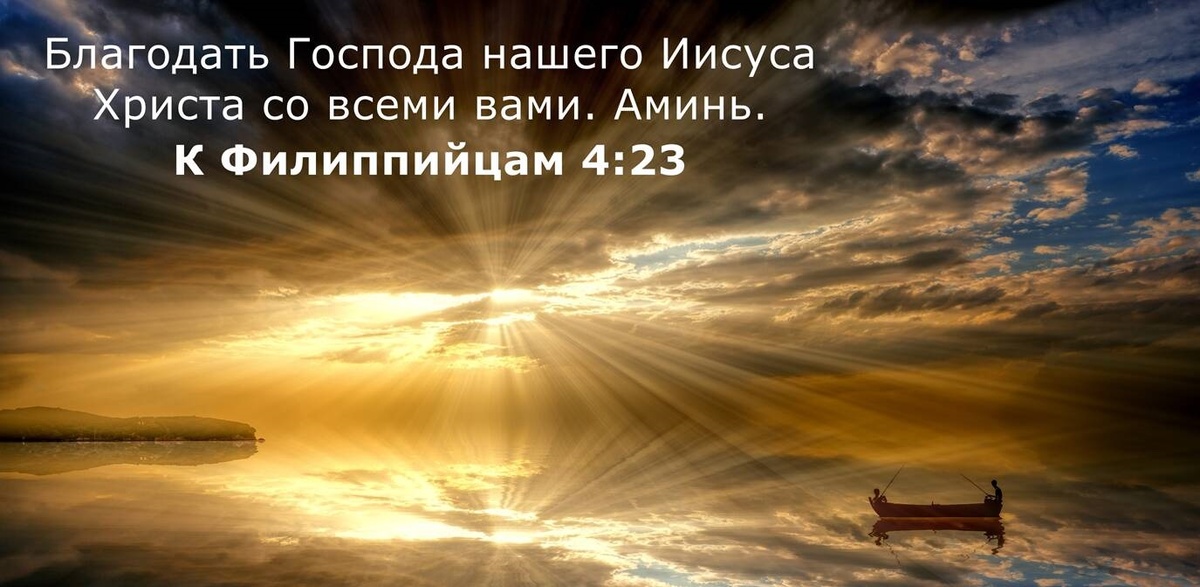 В Послании к филиппийцам остаётся один стих: благословение в стихе 23. Мы должны уделить минуту и рассмотреть его, так как он венчает всё послание. Во времена Павла было принято заканчивать письма кратким «прощанием», но апостол завершал свои послания благословением, молитвой за своих читателей. Формулировка менялась, но дух в своей основе оставался тем же: «Благодать Господа нашего Иисуса Христа со всеми вами» (ст. 23).