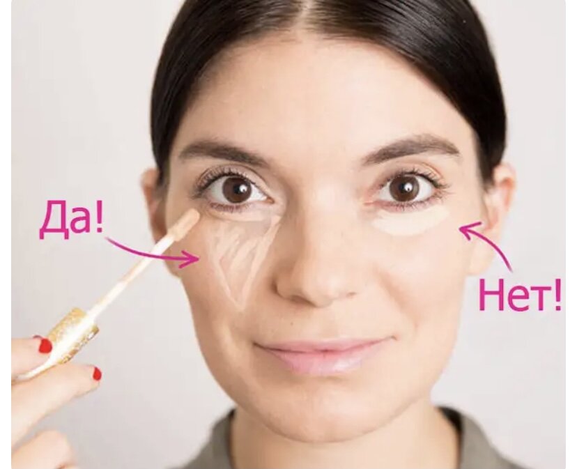 11. Чтобы правильно замаскировать синеву под глазами, нарисуйте корректором треугольник и аккуратно растушуйте его.