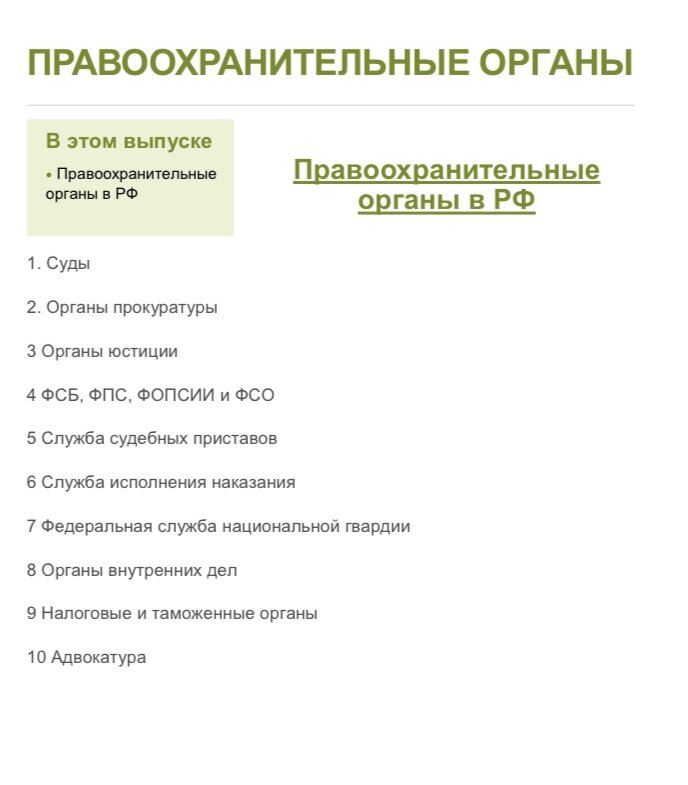 Правоохранительные органы в РФ 1. Суды 2. Органы прокуратуры 3 Органы юстиции 4 ФСБ, ФПС, ФОПСИИ и ФСО 5 Служба судебных приставов 6 Служба исполнения наказания 7 Федеральная служба национальной гвардии 8 Органы внутренних дел 9 Налоговые и таможенные органы 10 Адвокатура Ведение уголовных и гражданский дел 8(926)2181148 #адвокадское бюро версия #адвокат #юрист #юридическаяпомощь #адвокатмосква #адвокатпоуголовнымделам #правоваяпомощь #жилищныеспоры #апелляция #адвокатМосква