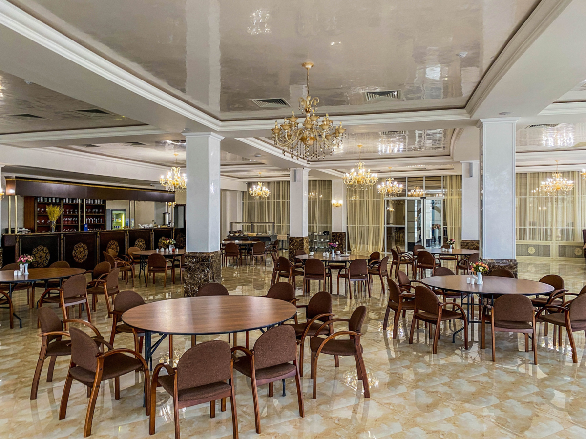 Номер мой находился на четвёртом этаже, кафе же было на первом. Так как я любитель утром поспать подольше, на завтрак я попал уже ближе к 10 часам. И в это время в кафе уже никого не было.