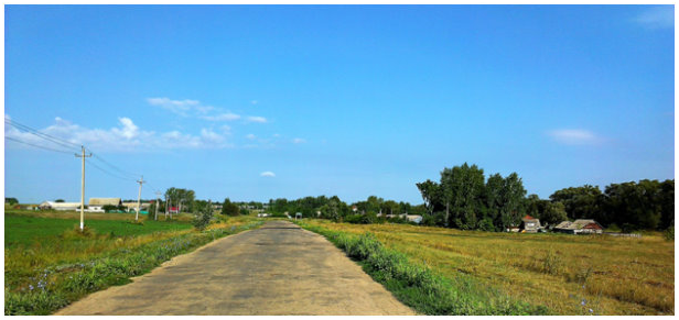 Дорога за околицей тянется вдоль поля в направлении леса… других достопримечательностей не видно….