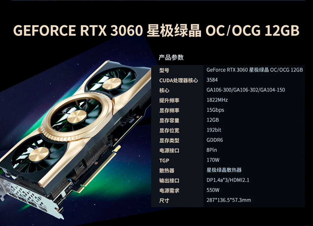 Как сообщалось ранее, у NVIDIA понятие отбраковки отсутствует практически полностью, и негодные для GeForce RTX 3060 Ti, RTX 3070 и RTX 3070 Ti графические процессоры GA104 в скором времени можно будет встретить в видеокартах GeForce RTX 3060. Первое время такие адаптеры будут продаваться только на китайском рынке. Пара китайских вендоров, Galax и Gainward, уже подтвердили использование GA104 в своих RTX 3060. Данный графический процессор получил маркировку GA104-150 и аналогичные GA106-300 и GA106-302 (LHR-вариант) характеристики: 3584 CUDA-ядер, 192-битная шина и номинальная частота работы до 1777 МГц. В составе адаптера от Galax чип разогнан до 1837 МГц. Заявленный уровень TDP тоже без изменений – 170 Вт. Оба вендора прямо не указывают, относятся ли варианты RTX 3060 на ядре GA104 к серии LHR со сниженным хешрейтом, но наверняка «майнинг-тормоз» есть. GeForce RTX 3060 на графическим процессоре GA104 будет сосуществовать на рынке с вариантами на оригинальном чипе GA106. На данный мом