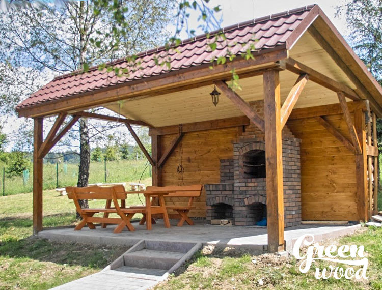 Из дерева – это самый популярный вариант. Такие беседки вполне можно построить своими руками из подручного материала. Но дерево – не очень-то бюджетный вариант, поэтому проще будет, если вместо дерева вы приобретете более дешевый вариант – металлический, из металлических профильных труб, например. В качестве фундамента можно использовать любую спецтехнику или рыть траншею под всем видом фундамента. Иногда на этом этапе многие допускают одну и ту же ошибку: используют в качестве основы для беседки металлические столбы в качестве опор, а это не самый лучший вариант. Столбы должны быть прочными и надежными. Если вы все же решили установить деревянные столбы, то наиболее оптимальным вариантом будет утеплить их с внутренней стороны и обложить крупным битым кирпичом. При таком варианте фундамента, дерево даже при сильных морозах не промерзнет. Очень часто при закладке фундамента или столбчатого – строительства беседки своими руками, но предварительно стоит выкопать траншеи под опорн