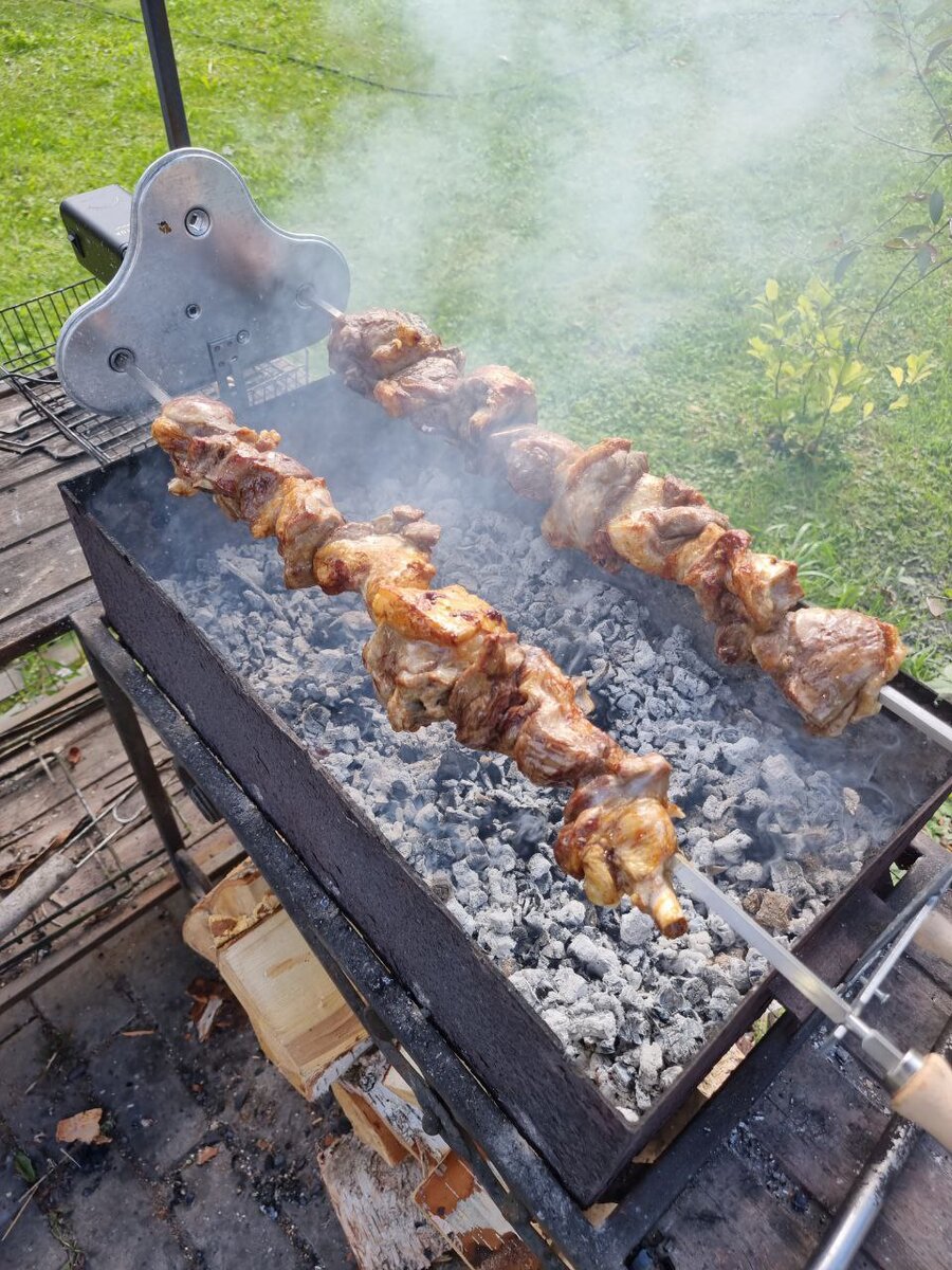 И так. Дача, природа, шашлыки. Как принято готовить шашлыки? Я не ошибусь, если скажу, что большинство людей готовят шашлык на решетках. Конечно, кто-то придерживается традиционных взглядов и использует шампура, но как по мне, так шампура не очень удобны, так как мясо периодически на шампурах проворачивается. Так что до недавнего времени, мой муж, так же готовил шашлык на решетке. Резал мясо (в основном свиную шейку) на кусочки и на решетку. Дело конечно не муторное, но сильно привязывает к мангалу и большую часть времени он проводит в дали от стола. Так продолжалось до того момента, пока мы не присмотрелись к технологиям Киприотов. Вот уж действительно, промышленный шпионаж. У Киприотов есть два вида мяса на мангале . Первый, очень похож на наш и называется «сувлаки». Это маленькие кусочки мяса на маленьких шампурах. И второй способ – «сувла» (разница в окончании). Сувла – это крупно нарубленные куски мяса, в основном баранины, нанизанные на ОГРОМНЫЕ шампура. Но секрет в Кипрски