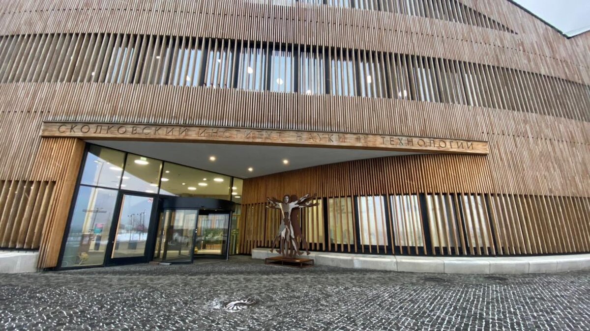 Этой весной мне посчастливилось попасть на закрытое мероприятие в Сколково. Интерьеры этого современного центра произвели на меня впечатление. Центр построен для молодых предпринимателей рядом с Москвой. К слову, обучение там стоит 700 000 руб. за 4 модуля по 5 дней. И это только одна из программ. Здание выглядит необычно. Словно это не учебный центр в России, а музей современного искусства в Европе или Австралии. Многие фотографируют фасад и фигуру у входа. Это "Витрувианский человек" Да Винчи, в котором отражается небо и новые горизонты: Внутри светло и просторно. Стены и потолок под необычными углами, в потолке световые окошки. Стиль можно назвать скандинавским: белые оштукатуренные стены, светлое дерево, бетон. В коридорах тихо и пусто, охрана следит за ношением средств защиты. Если дойти до конца и повернуть налево - там можно найти волейбольную сетку и тренажёры. Учащиеся #Сколково рассказали, для чего нужен агрегат слева под сеткой. На нём можно удобно зависнуть вниз головой, чт