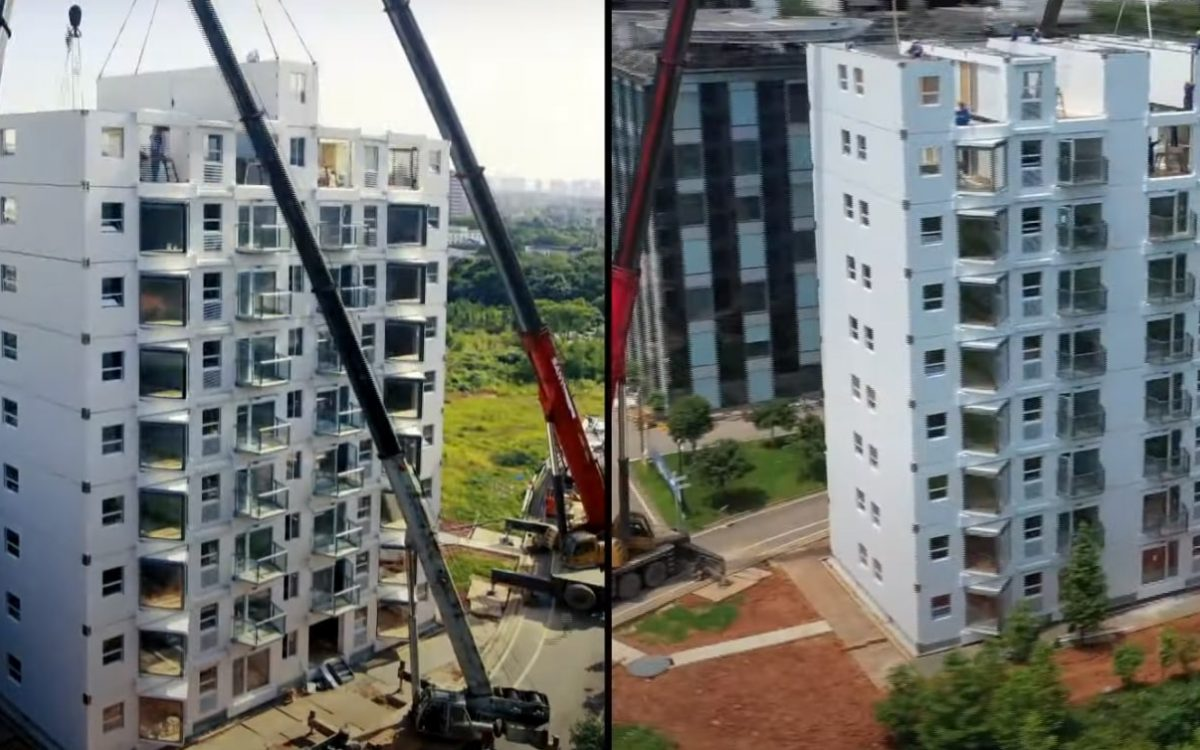 На видео показано, как можно построить 10-этажный дом за 1 день